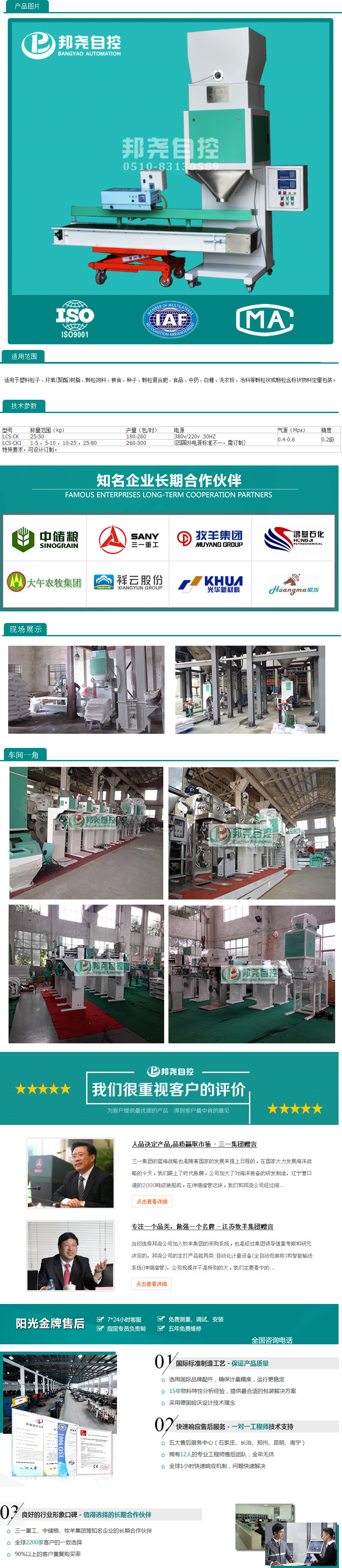 適用于塑料粒子、環氧(聚酯)樹脂、顆粒飼料、糧食、種子、顆粒復合肥、食品、中藥、白糖、洗衣粉、湯料等顆粒狀或顆粒含粉狀物料定量包裝。