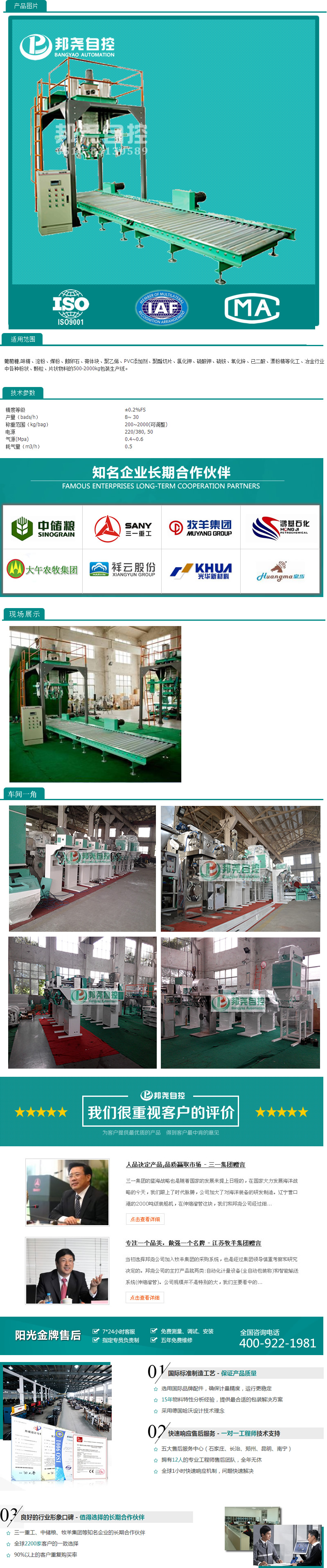 葡萄糖,味精、淀粉、煤粉、鵝卵石、膏體塊、聚乙烯、PVC添加劑、聚酯切片、氯化鉀、硫酸鉀、硫銨、氧化鋅、已二酸、漂粉精等化工、冶金行業中各種粉狀、顆粒、片狀物料的自動包裝。
