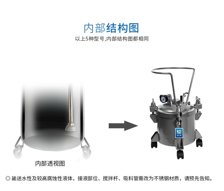 不銹鋼經濟無攪拌送漆桶,送漆桶是高壓噴涂工藝中必須的裝置,該設備具有耐高壓的特性。不銹鋼適用于水性、脫模劑送、膠水輸送、涂料輸送和其他常規液體輸送等。