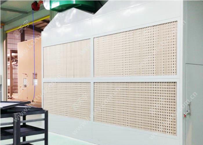 環保型水幕式水簾柜(噴漆臺)主要是由自吸水泵循環抽水往水簾板上均勻的流下來,噴槍噴出來的廢氣(漆霧)被水簾板上的水打到下面水池里。再有少部分的廢氣(漆霧)被上面的風機通過排風管道排出車間外面。使車間內沒什么廢氣(漆霧)給大家一個好的工作環境。